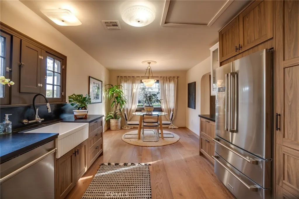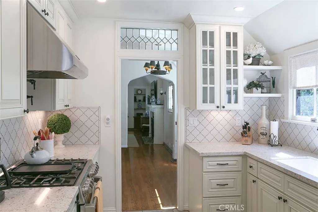 So if you are looking for South Pasadena schools then get ready to pony up and pay the price! This Spanish style home has been completely remodeled. Unfortunately in my opinion….too remodeled. It no longer has the charming plastered walls and original windows and just feels more like new construction. Still they probably redid all the systems since they gutted the walls and so you don’t have to worry about dealing with 20’s wiring and plumbing. It does have a very open flow with doors flowing out to a lovely covered patio and a very manicured backyard.