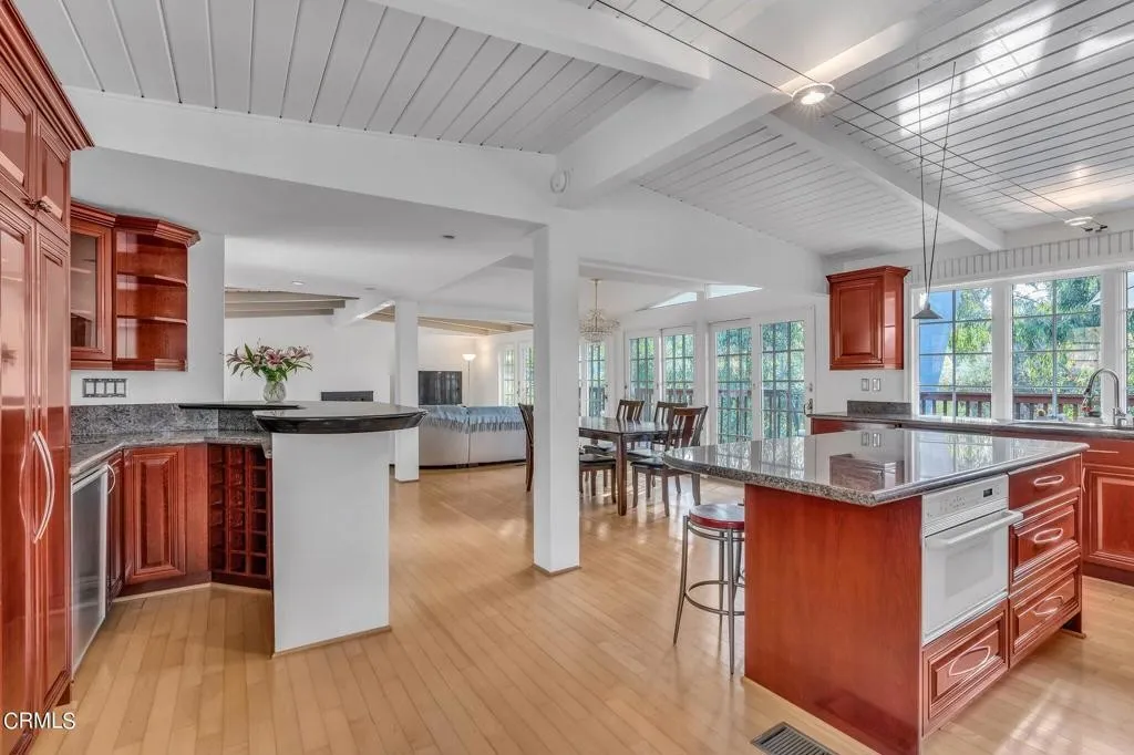 There hasn’t been much activity in the San Rafael Hills lately… so here’s your chance to get into the furthest west neighborhood in Pasadena that helps shorten that commute to downtown! Walking into that huge living space the view out the expansive wall of windows and doors feels like you’re in a tree house! I love the pitched beamed ceilings throughout! Now it does need a refresh and I would definitely start with those windows and doors! All those panes on the glass block my view! The kitchen is definitely showing it’s age and the baths have never been redone, but nothing money can’t fix! What you can’t replicate is that flow and that setting!